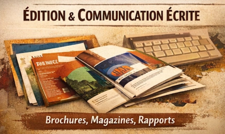 La communication éditoriale reste un levier essentiel pour structurer et valoriser les messages d’une organisation.Binthily accompagne ses clients dans la conception et la réalisation de contenus écrits : brochures, rapports institutionnels, magazines, newsletters, publications digitales ou documents corporate.De la rédaction à la mise en page, en passant par l’illustration et l’impression, nous assurons un suivi complet afin de produire des supports clairs, élégants et efficaces.